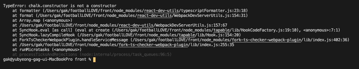 3. npm start 를 했더니 chalk.constructor is not a construtor 이라는 에러가 떴다.